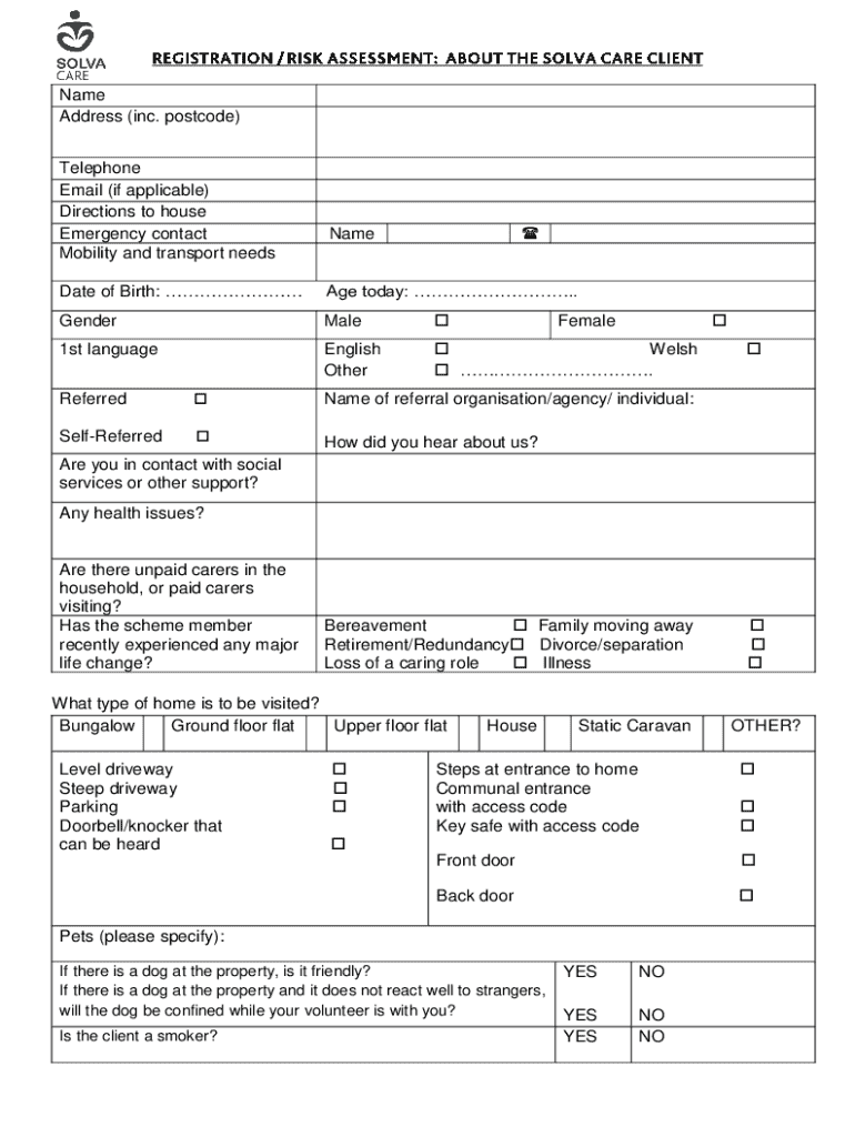 Name Address (inc. postcode) Telephone Email (if applicable) Directions to house Emergency contact Mobility and transport needsNameDate of Birth: Age today: ..GenderMale1st languageEnglish Other Welsh