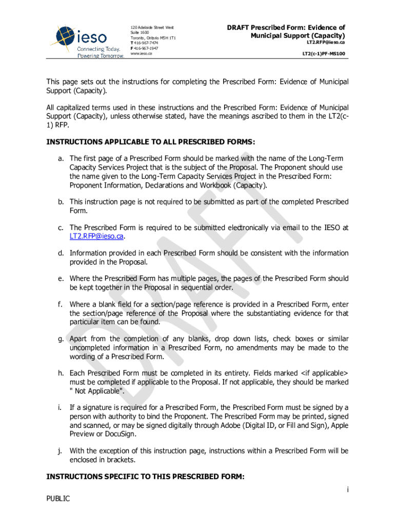 120 Adelaide Street West Suite 1600 Toronto, Ontario M5H 1T1 T 4169677474 F 4169671947 www.ieso.caDRAFT Prescribed Form: Evidence of Municipal Support (Capacity) LT2.RFP@ieso.caLT2(c1)PFMS100This
