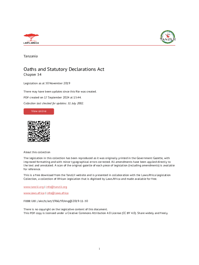 Get the free Oaths and Statutory Declarations Act