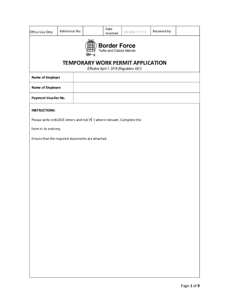 Get the free Temporary Work Permit Application