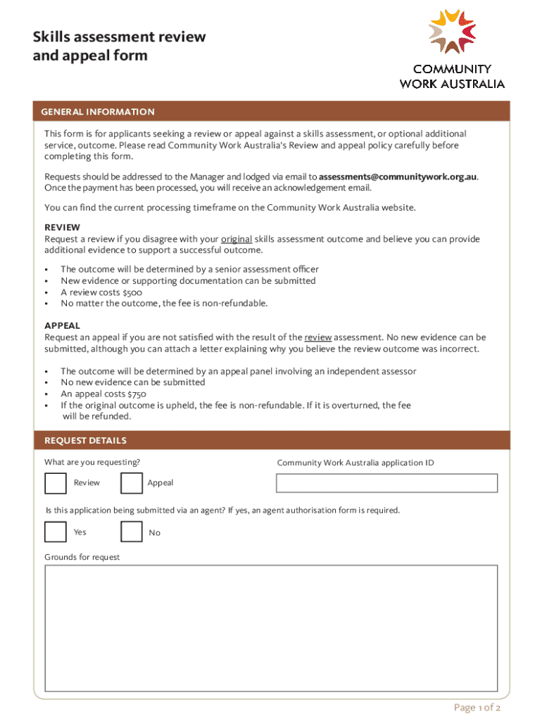 Get the free Skills Assessment Review and Appeal Form