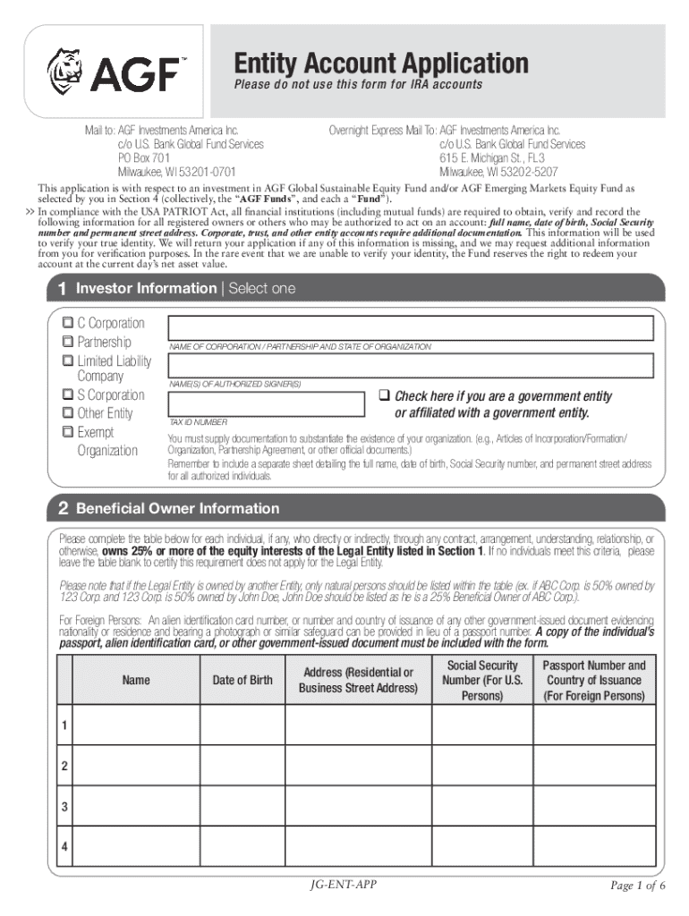 Entity Account Application Please do not use this form for IRA accountsOvernight Express Mail To: AGF Investments America Inc. c/o U.S. Bank Global Fund Services 615 E. Michigan St., FL3 Milwaukee,