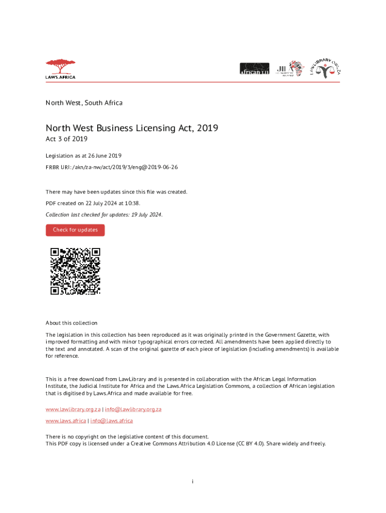 This Act provides for the regulation, control, and licensing of businesses in the North West Province of South Africa. It establishes the North West Business Licensing Authority and outlines the procedures for applying for business licences, including definitions, objects of the Act, application processes, licensing procedures, and general provisions.