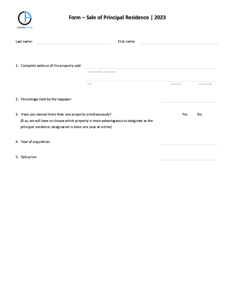 Sale Of Principal Residence is not the form you're looking for?Search for another form here.