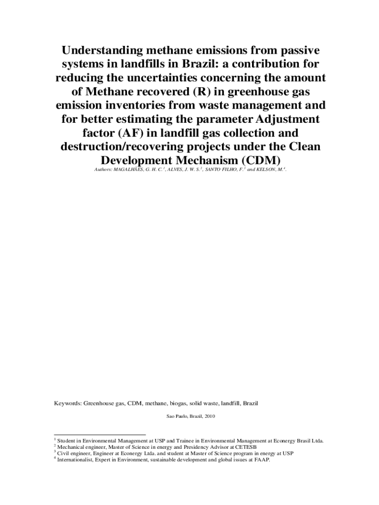 Understanding methane emissions from passive systems in landfills in Brazil: a contribution for reducing the uncertainties concerning the amount of Methane recovered (R) in greenhouse gas emission