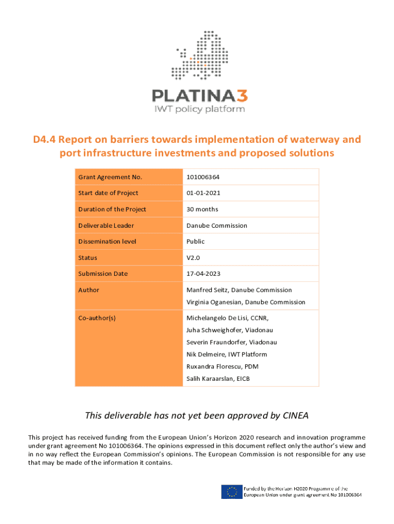 D4.4 Report on barriers towards implementation of waterway and port infrastructure investments and proposed solutions Grant Agreement No.101006364Start date of Project01012021Duration of the Project30