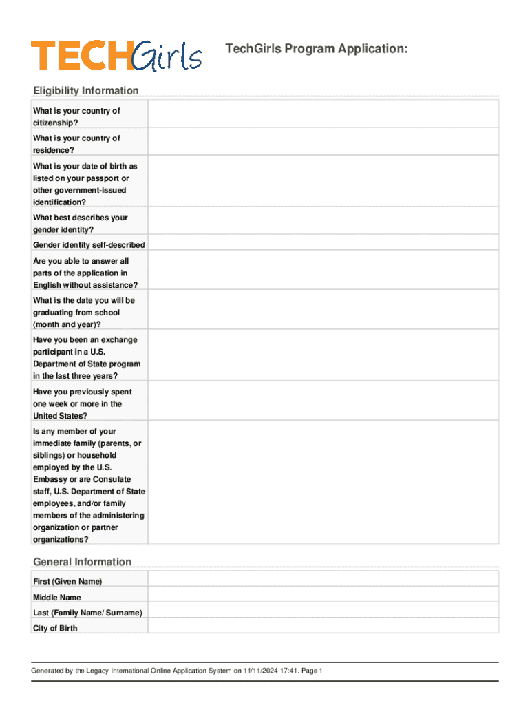 To fill out the TechGirlsExchange programs - department application or report forms, applicants should follow the provided guidelines, which typically include personal information, program details, goals, achievements, and any required documentation.