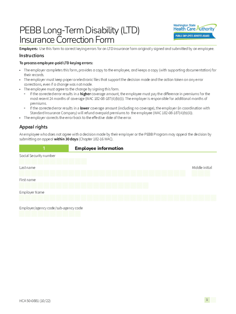 Get the free Pebb Long-term Disability (ltd) Insurance Correction Form