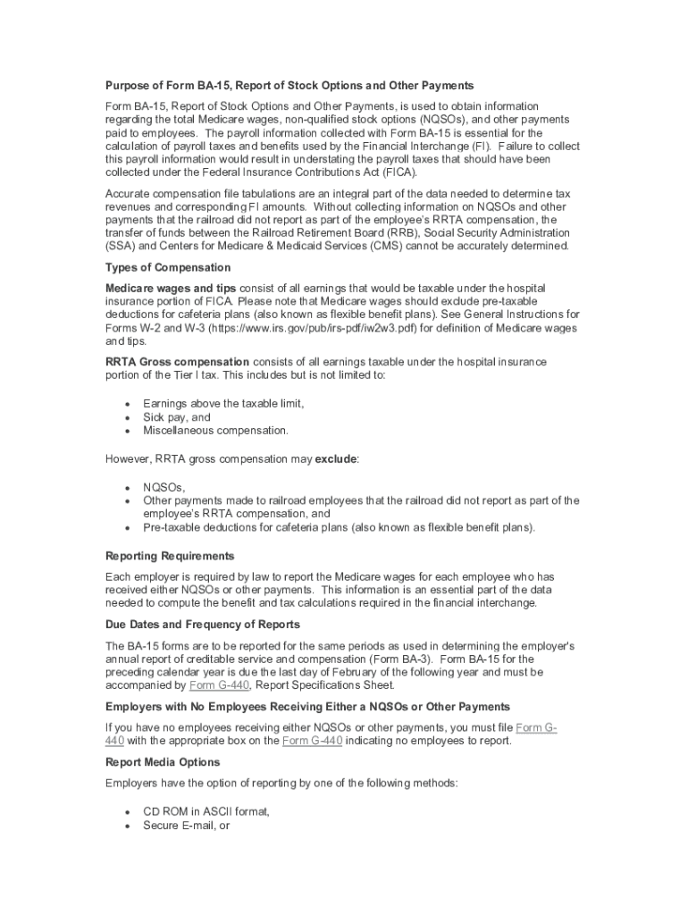 Purpose of Form BA15, Report of Stock Options and Other Payments Form BA15, Report of Stock Options and Other Payments, is used to obtain information regarding the total Medicare wages, nonqualified