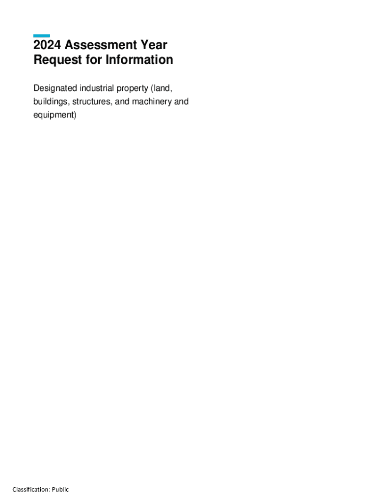 2024 Assessment Year Request for Information Designated industrial property (land, buildings, structures, and machinery and equipment)Classification: PublicMail date: August 23, 2024 Date of request: