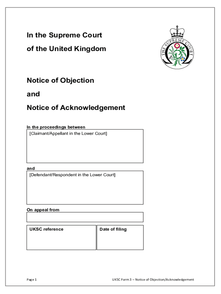 Get the free Uksc Form 3 - Notice of Objection/acknowledgement