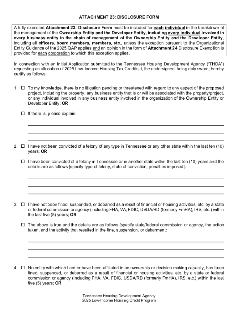 Get the free Attachment 23: Disclosure Form
