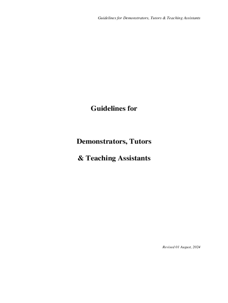 Guidelines for Demonstrators, Tutors & Teaching AssistantsGuidelines forDemonstrators, Tutors & Teaching AssistantsRevised 01 August, 2024Guidelines for Demonstrators, Tutors & Teaching AssistantsTable