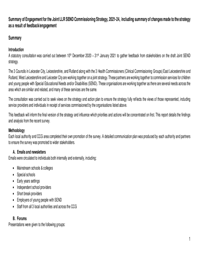 Get the free Summary of Engagement for the Joint LLR SEND Commissioning Strategy, 2021-24, includ...