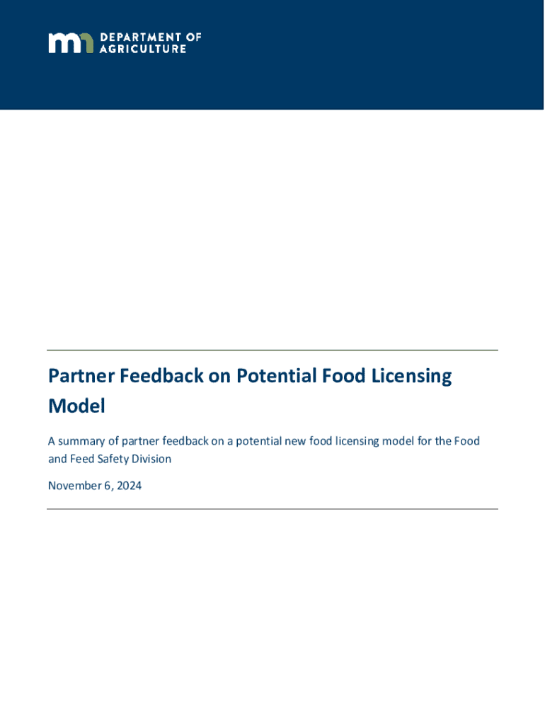 A summary of partner feedback on a potential new food licensing model for the Food and Feed Safety Division.