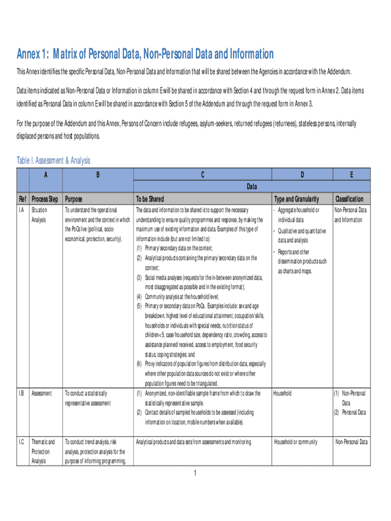 Get the free Annex 1: Matrix of Personal Data, Non-personal Data and Information