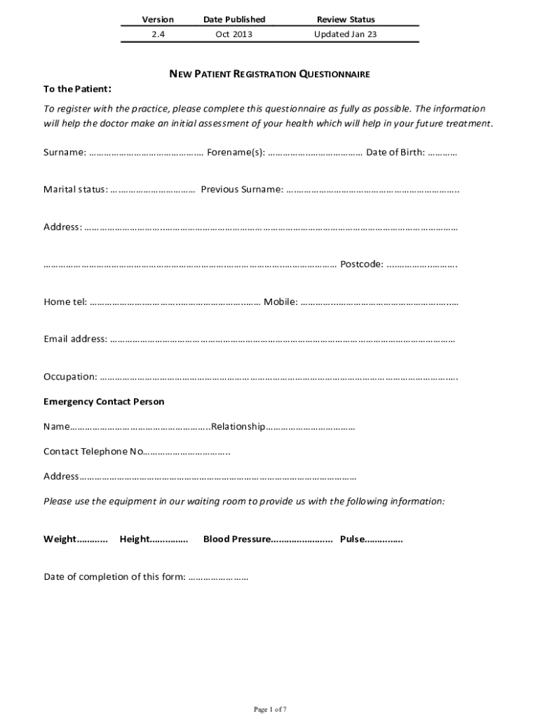Get the free New Patient Registration Questionnaire - belfordmedicalpractice nhs