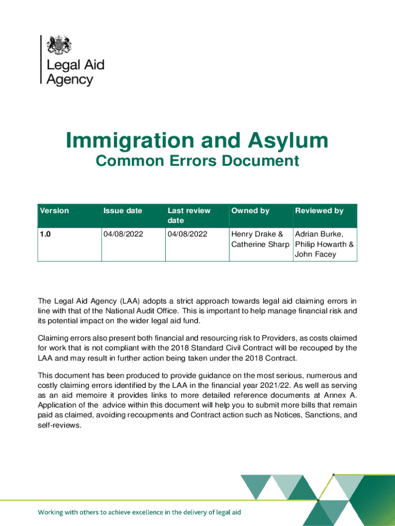 Immigration and Asylum Common Errors DocumentVersionIssue dateLast review dateOwned byReviewed by1.004/08/202204/08/2022Henry Drake & Adrian Burke, Catherine Sharp Philip Howarth & John FaceyThe Legal