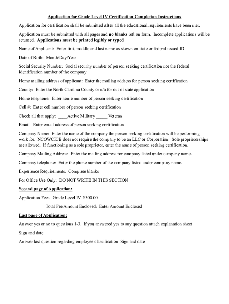 Este documento proporciona instrucciones detalladas para la presentación de solicitudes de certificación de nivel IV, incluyendo requisitos de experiencia, tarifas y proceso de envío.