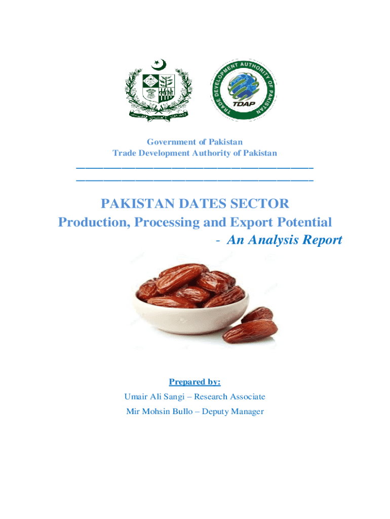 Government of Pakistan Trade Development Authority of Pakistan ___ ___PAKISTAN DATES SECTOR Production, Processing and Export Potential An Analysis ReportPrepared by: Umair Ali Sangi Research Associate