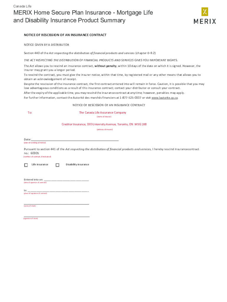MERIX Home Secure Plan Insurance Mortgage Life and Disability Insurance Product SummaryThis document contains both information and form fields. To read information, use the Down Arrow from a form