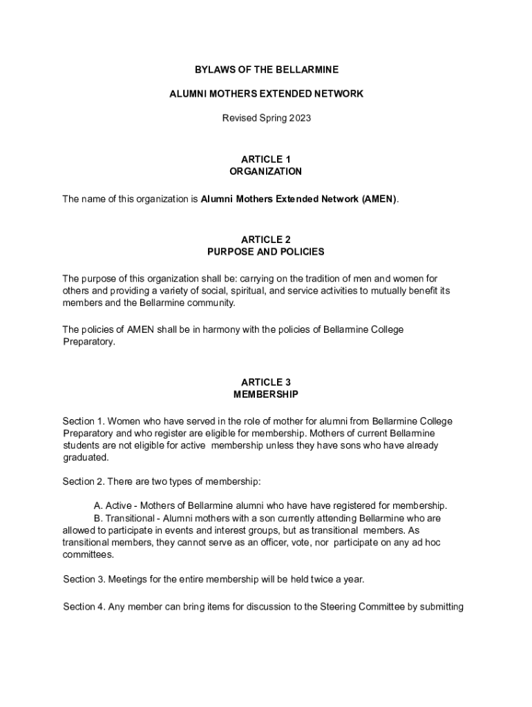 Get the free Bylaws of the Bellarmine Alumni Mothers Extended Network
