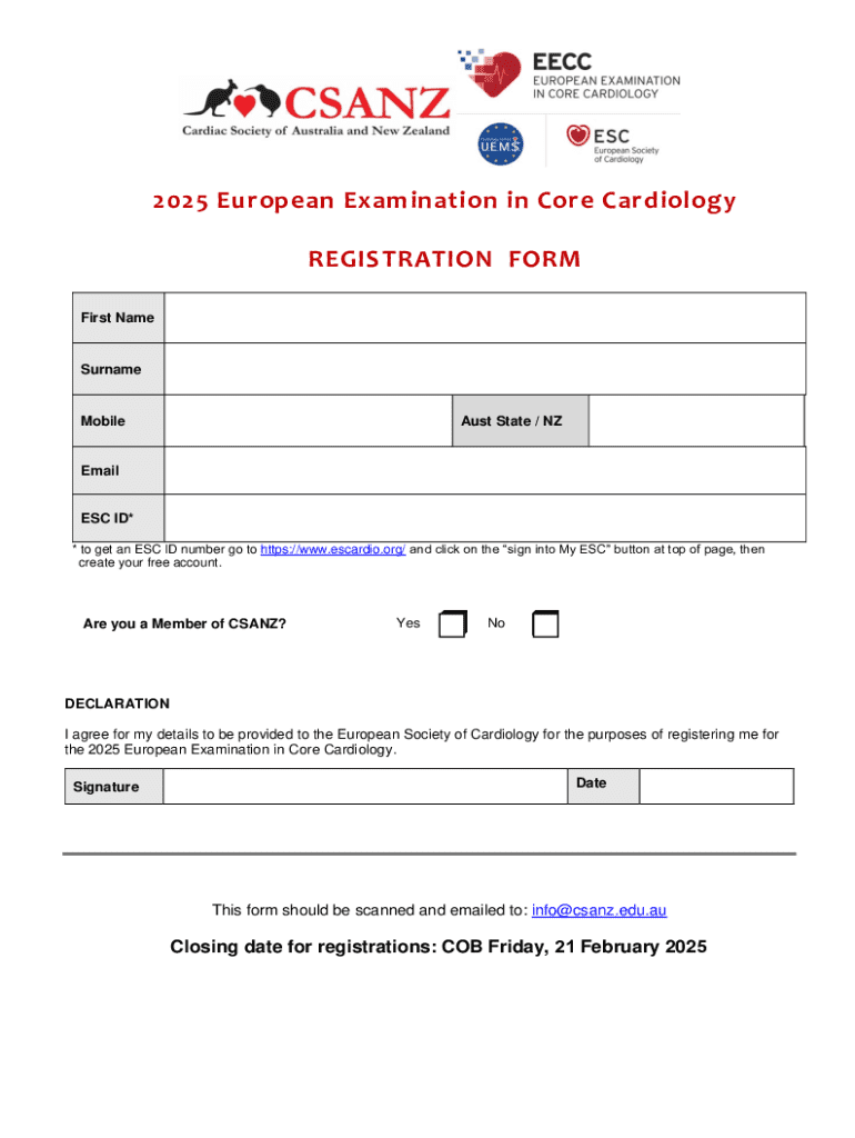 Get the free 2025 European Examination in Core Cardiology Registration Form