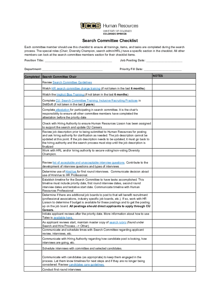 Typically, members of the search committee or hiring managers are required to file the search committee checklist as part of the hiring process.