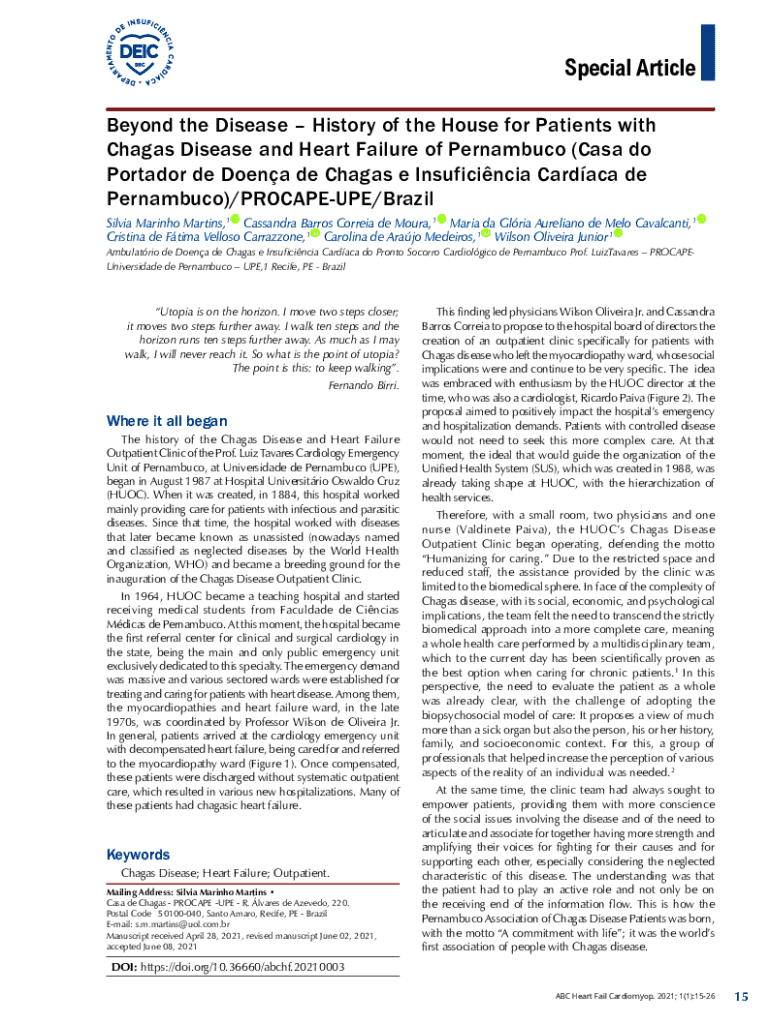Special Article Beyond the Disease History of the House for Patients with Chagas Disease and Heart Failure of Pernambuco (Casa do Portador de Doena de Chagas e Insuficincia Cardaca de Pernambuco)/PROCAPEUPE/Brazil