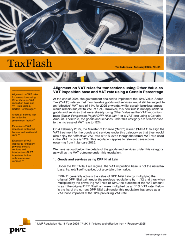 Dokumen ini membahas tentang peraturan pajak pertambahan nilai (PPN) yang baru diberlakukan oleh pemerintah, serta berbagai insentif pajak yang berlaku untuk properti dan kendaraan tertentu. Penjelasan mencakup tarif PPN yang baru, ketentuan untuk barang dan jasa yang menggunakan Dasar Pengenaan Pajak (DPP) Nilai Lain, dan pajak penghasilan Artikel 21 yang ditanggung oleh fasilitas pemerintah.