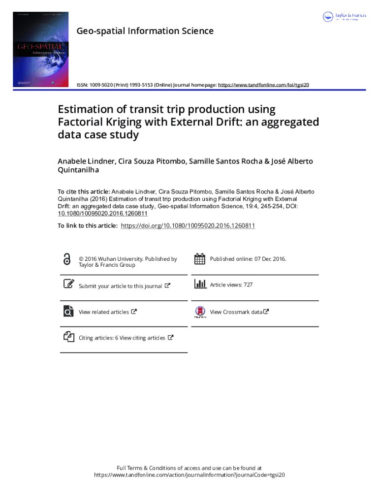Geospatial Information ScienceISSN: 10095020 (Print) 19935153 (Online) Journal homepage: https://www.tandfonline.com/loi/tgsi20Estimation of transit trip production using Factorial Kriging with External