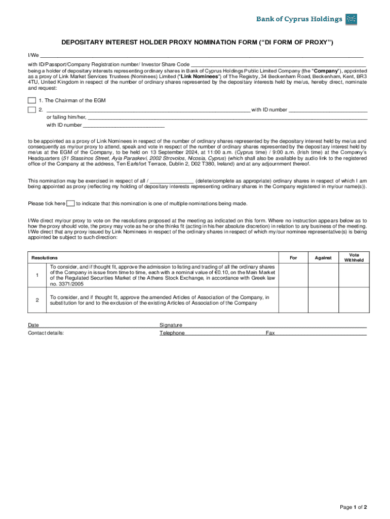 DEPOSITARY INTEREST HOLDER PROXY NOMINATION FORM (DI FORM OF PROXY) I/We ___ with ID/Passport/Company Registration number/ Investor Share Code ___ being a holder of depositary interests representing