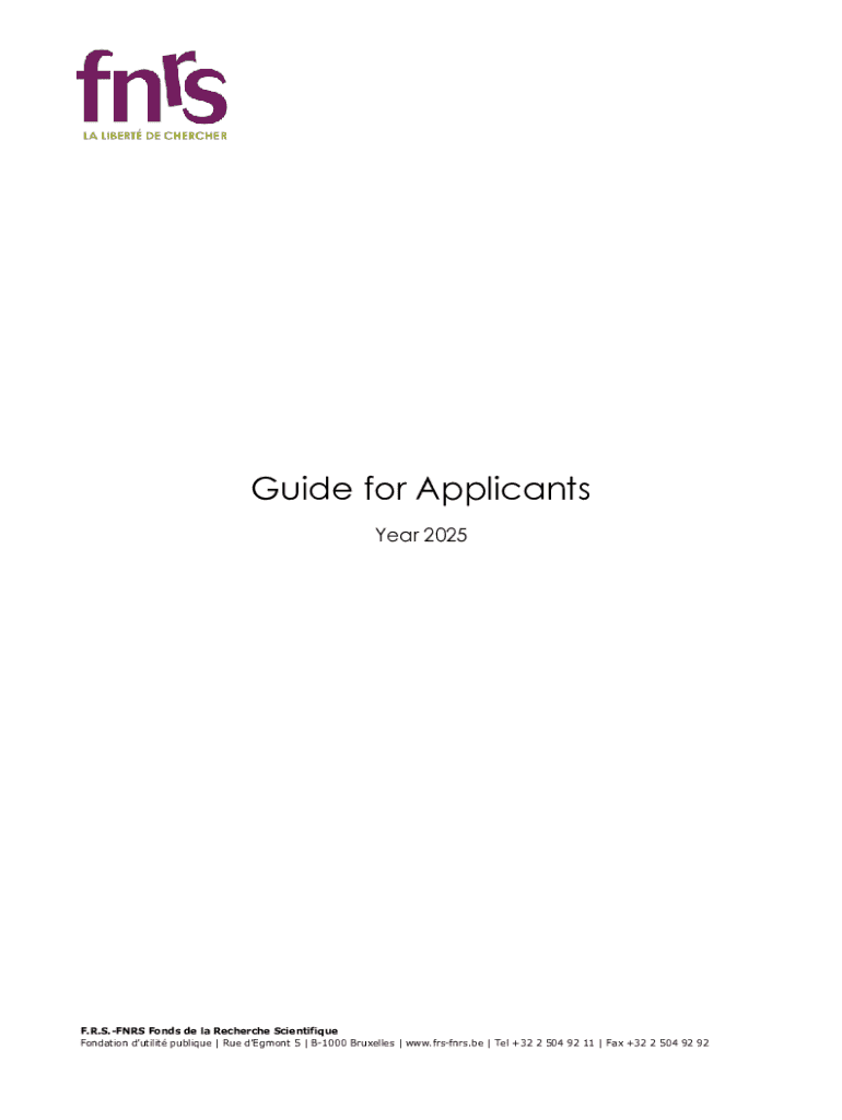 Guide for Applicants Year 2025F.R.S.FNRS Fonds de la Recherche Scientifique Fondation dutilit publique | Rue dEgmont 5 | B1000 Bruxelles | www.frsfnrs.be | Tel +32 2 504 92 11 | Fax +32 2 504 92 92FOREWORD
