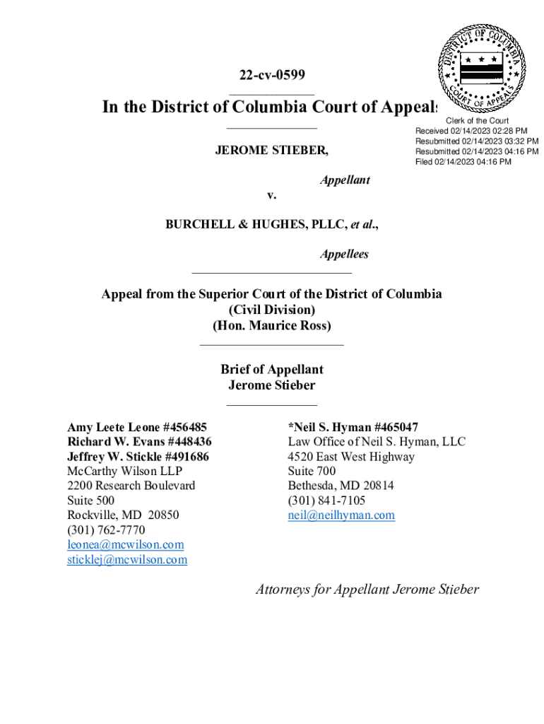 22cv0599___In the District of Columbia Court of Appeals ___JEROME STIEBER,Clerk of the Court Received 02/14/2023 02:28 PM Resubmitted 02/14/2023 03:32 PM Resubmitted 02/14/2023 04:16 PM Filed 02/14/2023
