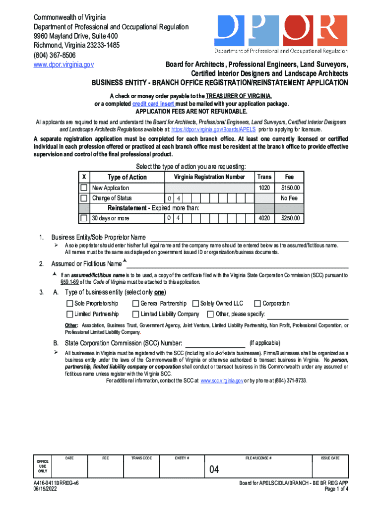 Commonwealth of Virginia Department of Professional and Occupational Regulation 9960 Mayland Drive, Suite 400 Richmond, Virginia 232331485 (804) 3678506 www.dpor.virginia.gov Board for Architects,