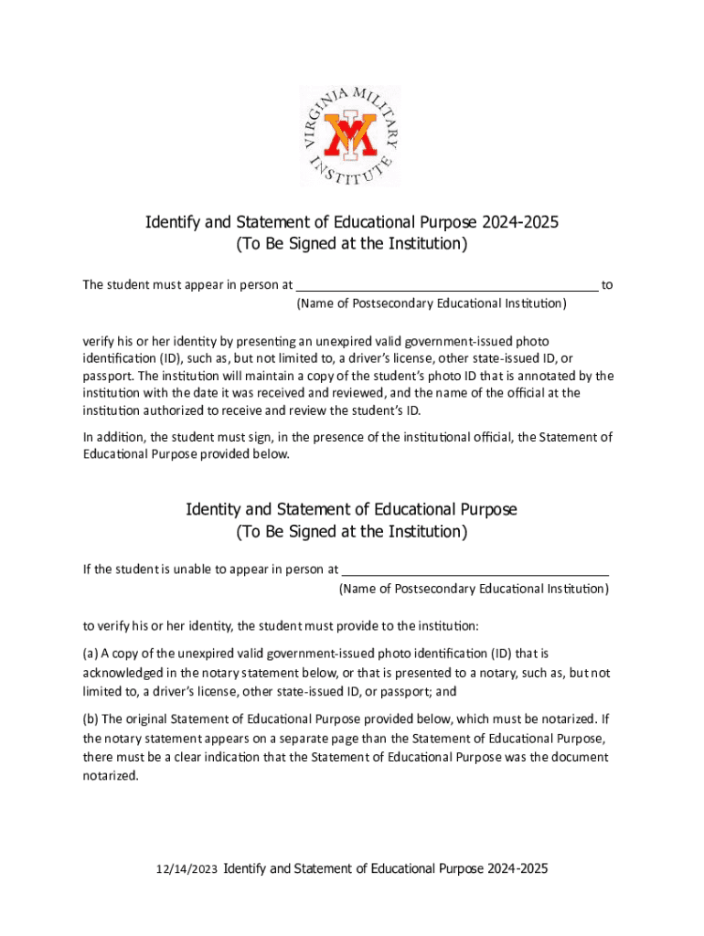Get the free Identify and Statement of Educational Purpose 2024-2025
