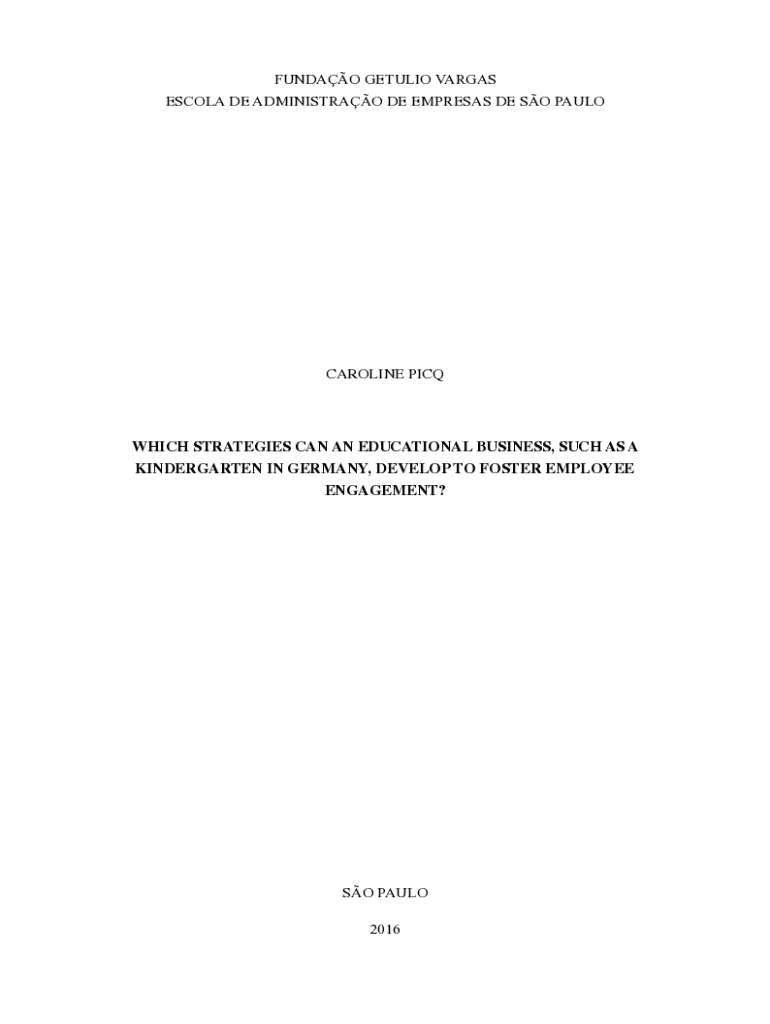 !1 FUNDAO GETULIO VARGAS ESCOLA DE ADMINISTRAO DE EMPRESAS DE SO PAULOCAROLINE PICQWHICH STRATEGIES CAN AN EDUCATIONAL BUSINESS, SUCH AS A KINDERGARTEN IN GERMANY, DEVELOP TO FOSTER EMPLOYEE ENGAGEMENT?SO