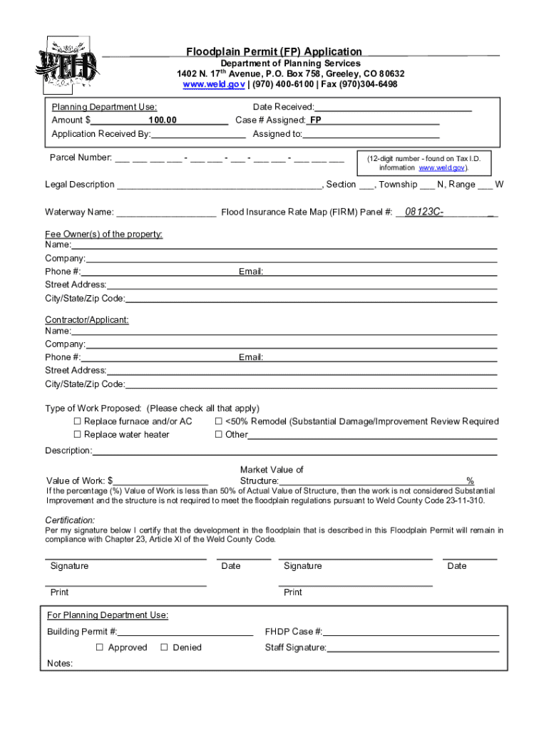 Get the free Floodplain Permit (fp) Application
