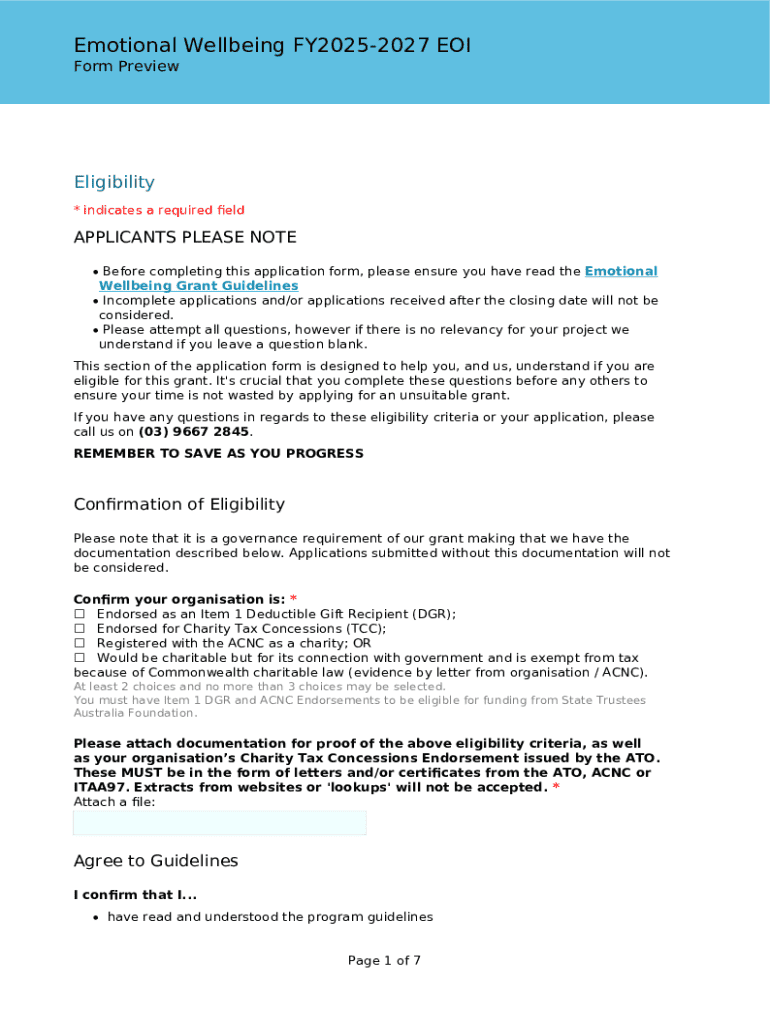 Fill out your emotional wellbeing fy2025-2027 eoi online with pdfFiller!