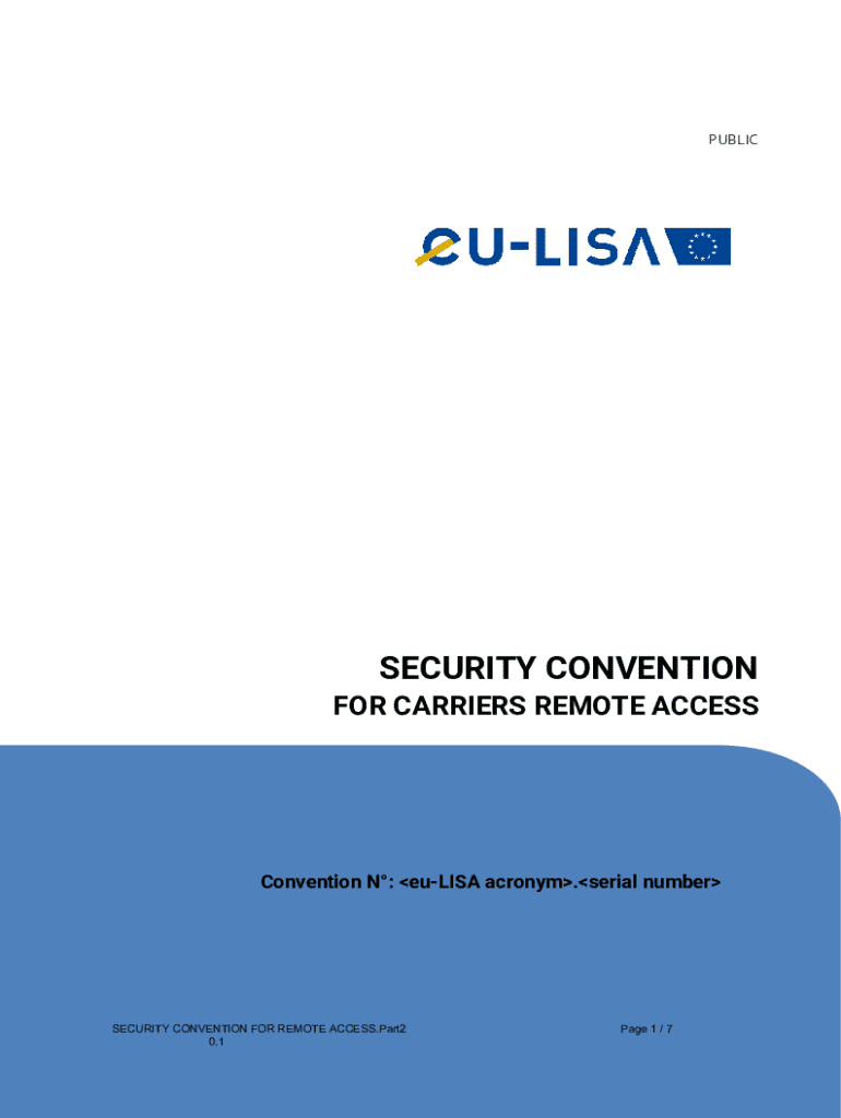 PUBLICSECURITY CONVENTION FOR CARRIERS REMOTE ACCESSConvention N: euLISA acronym.serial numberSECURITY CONVENTION FOR REMOTE ACCESS.Part2 Document Version 0.1Page 1 / 7PUBLIC___company namewhose registered