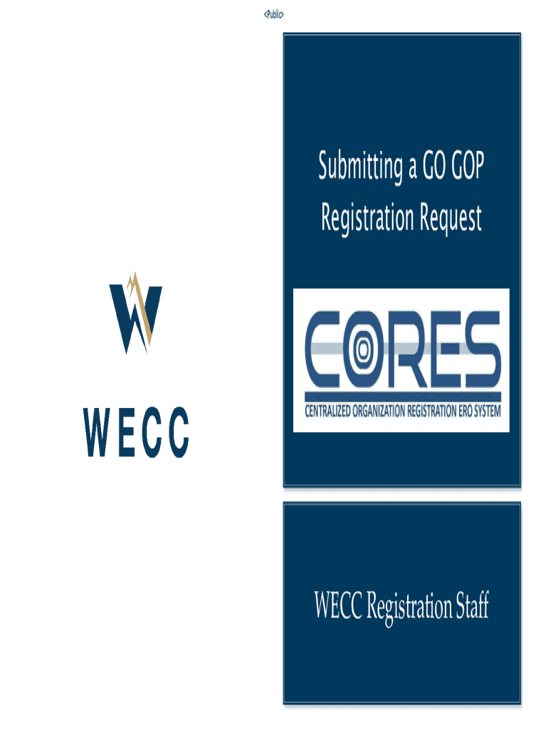 PublicSubmitting a GO GOP Registration RequestWECC Registration StaffPublicItems Covered Overview of the Registration Process for a New Generator Owner (GO) and Generator Operator (GOP) General Information