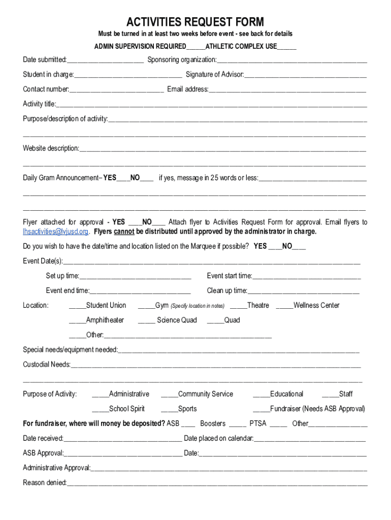 Get the free Activities Request Form