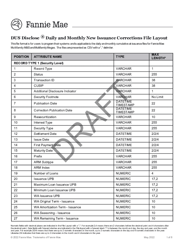 DUS Disclose Daily and Monthly New Issuance Corrections File Layout This file format is for users to program their systems and is applicable to the daily and monthly cumulative atissuance files for