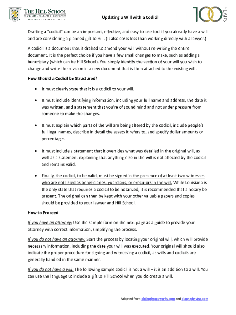 Get the free Updating a Will With a Codicil