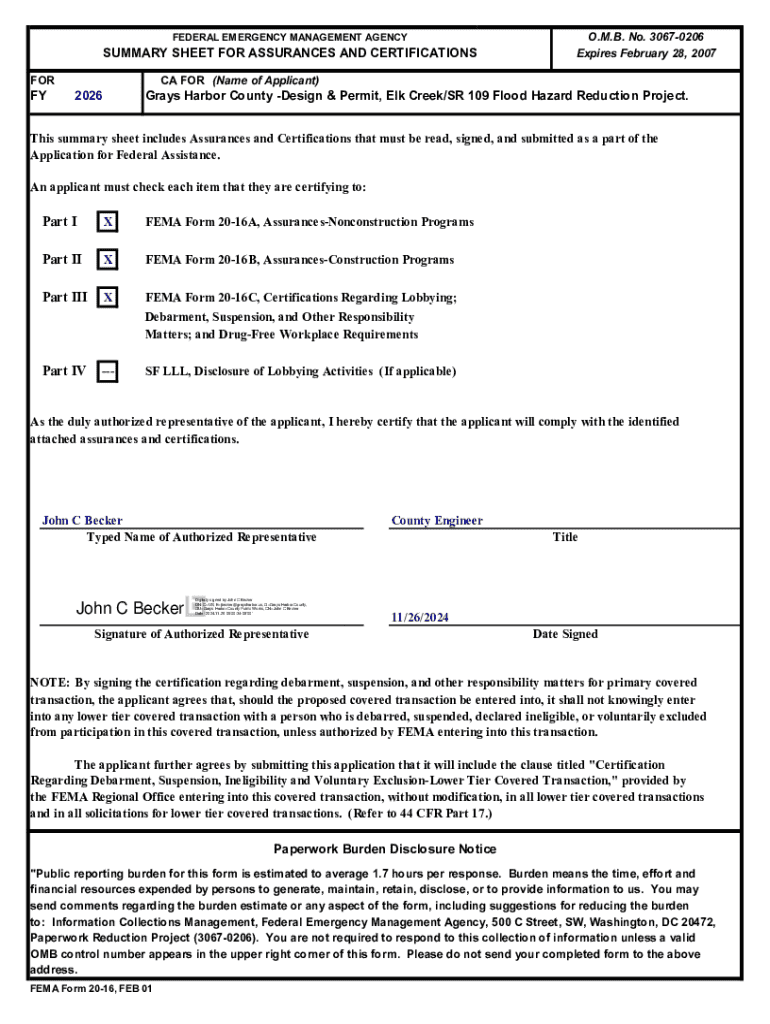 Este formulario incluye garantías y certificaciones que deben ser leídas, firmadas y presentadas como parte de la solicitud de asistencia federal. El solicitante debe verificar cada ítem que está certificando.
