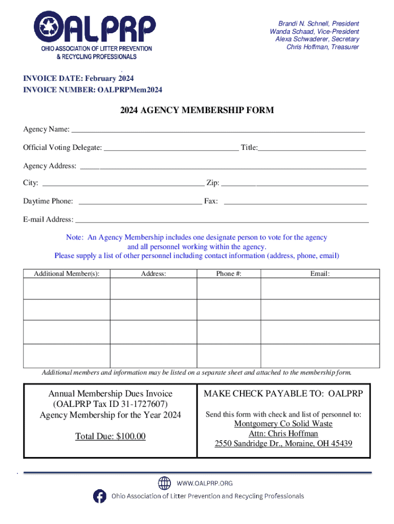 Who needs 2024 agency membership form?