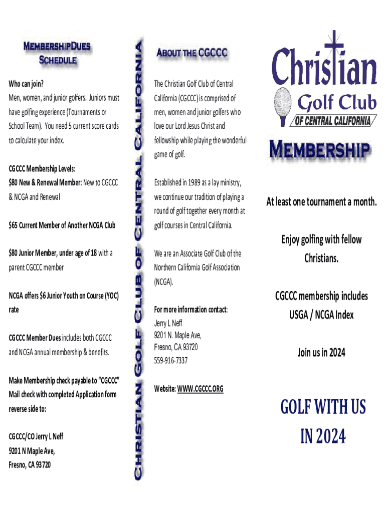 Who can join? Men, women, and junior golfers. Juniors must have golfing experience (Tournaments or School Team). You need 5 current score cards to calculate your index. CGCCC Membership Levels: $80