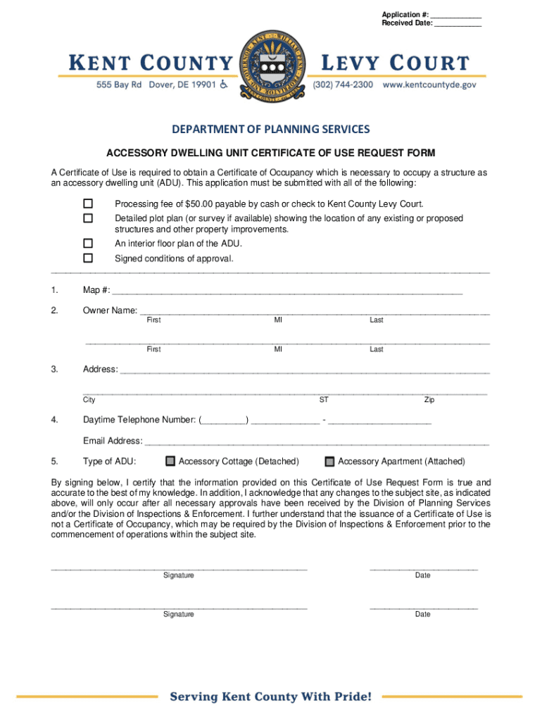 Get the free Accessory Dwelling Unit Certificate of Use Request Form