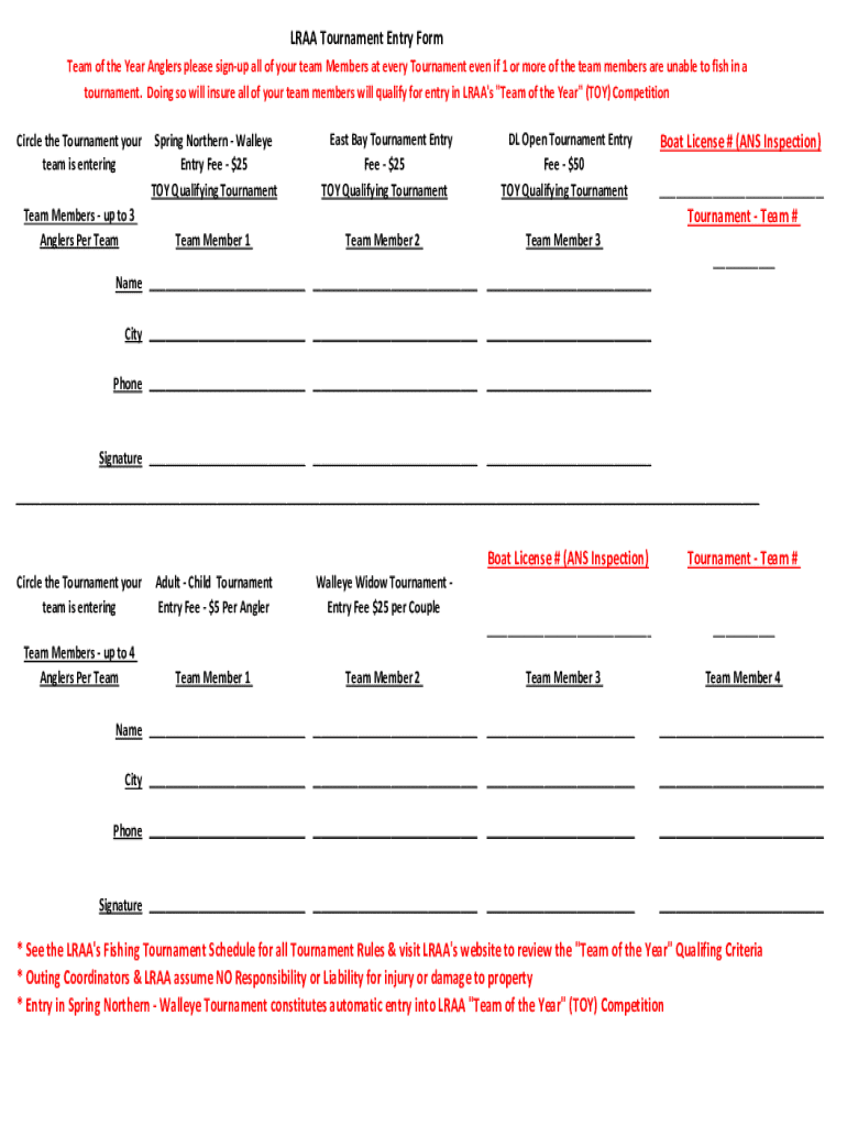 Lraa Tournament Entry Form is not the form you're looking for?Search for another form here.