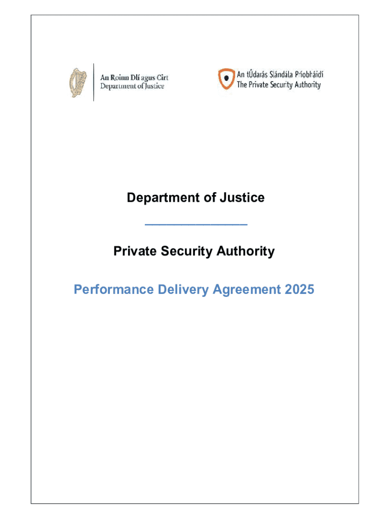 Department of Justice ___ Private Security Authority Performance Delivery Agreement 20251. Background and context 1.1 Objectives of this Agreement The purpose of this Agreement is to define, in the